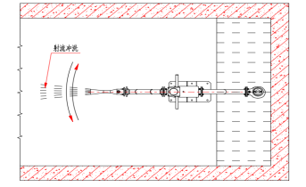 在調蓄池排空泵將調蓄池排空后,此時調蓄池底部有大量的淤積物。同時水位傳感器檢測到水位處于地位時,智能噴射器啟動,其噴管在水平0~260°范圍內旋轉(如圖2圖3所示)噴射氣水混合物,對調蓄池進行全方位沖洗。