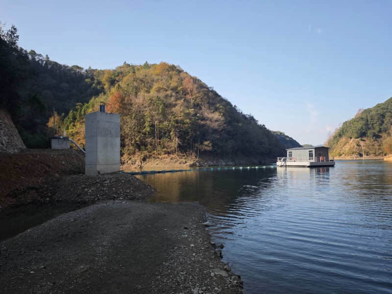 同時(shí),船載立式長軸深井泵憑借低功率、高揚(yáng)程、小流量的核心優(yōu)勢,可實(shí)現(xiàn)每小時(shí)100立方米的不間斷取水,精準(zhǔn)抽取水下800毫米左右的優(yōu)質(zhì)水源,水質(zhì)干凈,極大地降低了從直取水到飲用水的凈化處理工藝,為當(dāng)?shù)鼐用耧嬘眉吧a(chǎn)供水需求筑牢“水源防線”。尤為值得一提的是,浮船及泵房的造型設(shè)計(jì)與色彩搭配深度契合周邊自然環(huán)境,與青山綠水相映成趣、色調(diào)和諧,實(shí)現(xiàn)了工程實(shí)用性與生態(tài)美觀性的完美融合,讓水利設(shè)施成為鄉(xiāng)村景致中一道別樣的風(fēng)景線。